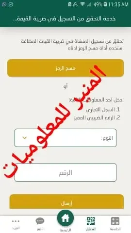 ايضا تستطيع ان تتأكد من تسجيل المنشاة عن طريق الرقم الضريبي الخاص بك ويمكنك حذف رمز QR في شهادة التسجيل الخاصة بك.